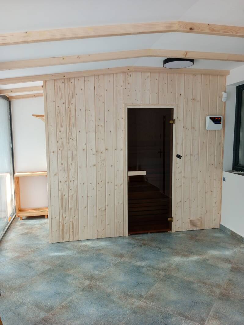 Stwórz własną strefę relaksu z sauną na wymiar – drewniane wnętrze, nowoczesny piec, perfekcyjny komfort.